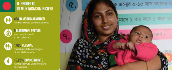 In Bangladesh, a Muktagacha South, le attività di World Vision si sono concentrate sulla salute materno-infantile: 494 bambini malnutriti sono stati visitati e curati. Nello scorso anno, il tasso di malnutrizione dei piccoli al di sotto dei 5 anni in quest’area è sceso dal 34,6% al 27,5%. Inoltre, le donne incinte che hanno ricevuto assistenza prenatale sono state l’8,25% in più.