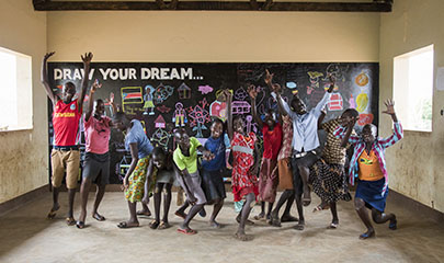 L'artista irlandese Maser ha lavorato direttamente con i giovani rifugiati nel dipingere uno degli Child Friendly Spaces (CFS) di World Vision, trasformando uno degli spazi per bambini, da un semplice edificio in mattoni rossi, in un simbolo colorato di speranza. Gli Spazi a Misura di Bambino di World Vision offrono ai bambini sostegno psicosociale per il superamento del trauma, assicurano istruzione a diversi livelli, garantiscono un posto sicuro per giocare e chiedere aiuto. Abbiamo 26 Child Friendly Spaces nel nord dell’ Uganda che garantiscono sicurezza a 52.000 bambini.
