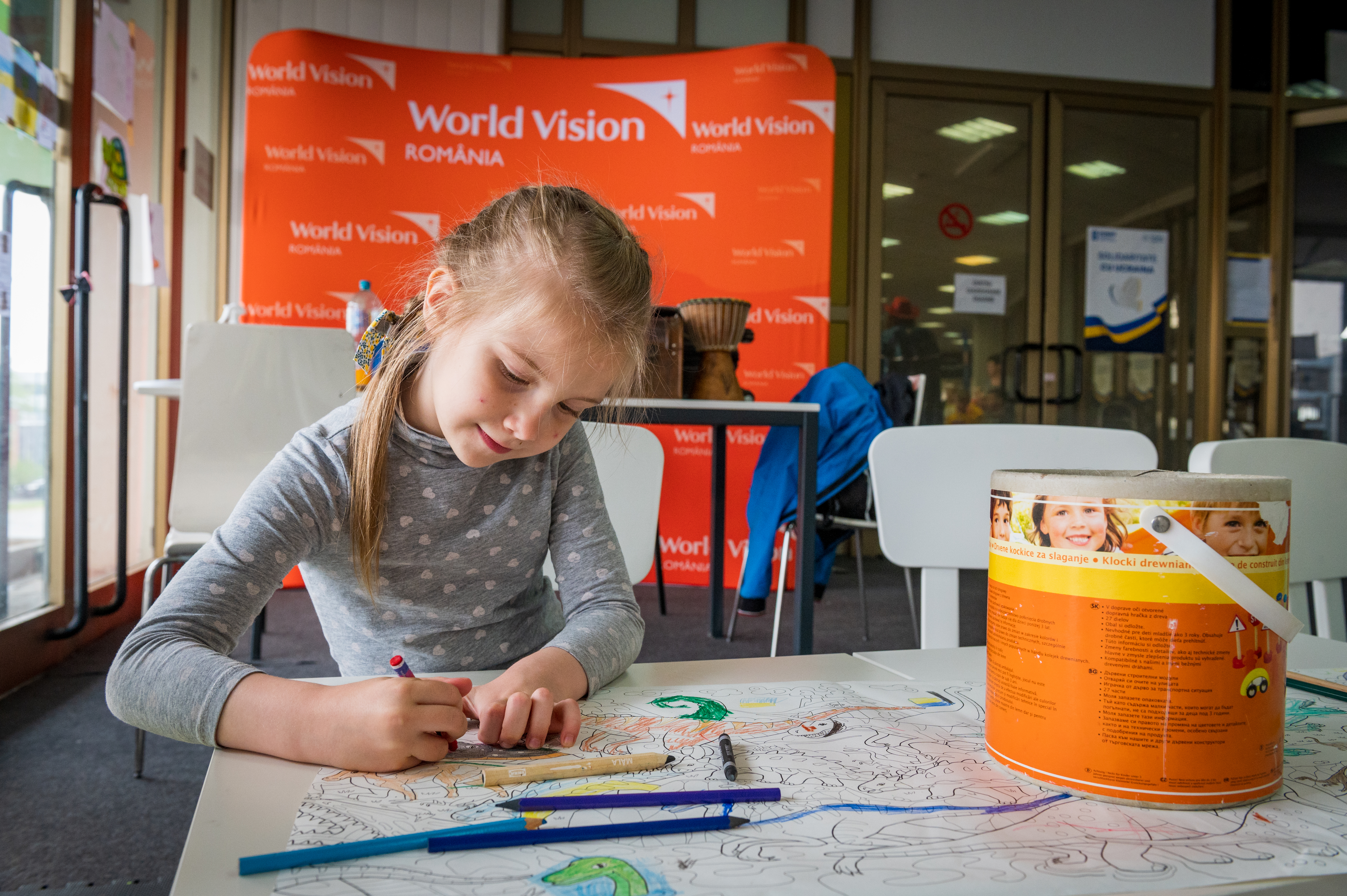 All’interno del CFS della RomExpo di Bucharest, in Romania, molti bambini si dilettano con puzzle, disegni e giochi interattivi. La responsabile Margareta Ionescu supervisiona i giovani che fanno volontariato e racconta: “All’inizio non è facile rompere il ghiaccio con i bambini perché spesso sono timidi, ma quando iniziano a fidarsi, leggo nei loro volti tanta voglia di svagarsi e non pensare alla guerra”.