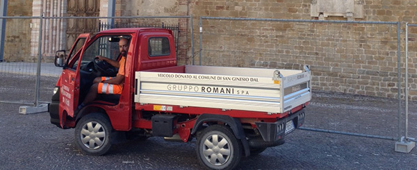 In collaborazione con World Vision Italia, l'azienda ha donato alla comunità di San Ginesio un veicolo ribaltabile, messo a disposizione degli operai comunali per la ricostruzione del paese in seguito al terremoto che ha colpito il centro Italia. “È stato un dono prezioso per noi per la manutenzione delle strade, per la sistemazione del paese”, ha commentato il sindaco di San Ginesio, Mario Scagnetti. “Il prossimo inverno potremo inoltre utilizzare questo mezzo per lo spargimento di sale, operazione vitale per paesi come il nostro, dove il gelo e la neve si fanno sentire. Al Gruppo Romani va il nostro più sentito ringraziamento”.