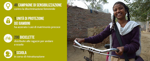 Nell’area di Faridkot, in India, la discriminazione di genere è molto forte. World Vision l’anno scorso ha realizzato 48 campagne di sensibilizzazione nei villaggi dell’area, contro il feticidio femminile, i matrimoni precoci e il traffico di minori. L’amministrazione locale ha risposto positivamente alle campagne e ha creato una Unità di Protezione dei Bambini, che si è impegnata ad azzerare i casi di matrimonio forzato.