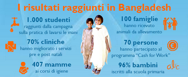Nell’area di Muktagacha in Bangladesh World Vision ha organizzato corsi di igiene e corsi sulla nutrizione infantile, a cui hanno partecipato 407 mamme. Questo ha determinato un notevole miglioramento della salute dei bambini dell’area: il 72% dei piccoli tra i 6 e i 23 mesi ha raggiunto un peso adeguato e un ulteriore 18% dei bambini fino ai 5 anni ha guadagnato peso rispetto all’anno precedente.
